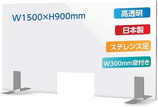 [日本製][アクリル板] ステンレス足付き透明 アクリル板 パーテーション 窓付き W1500*H900mm 板厚5mm 飛沫防止 組立式 受付 カウンター デスク仕切り 仕切り板 衝立 ソーシャルディスタンス 飲食店 オフィス 学校 病院 薬局 クリニック 銀行【受注生産 返品交換不可】pet-s15090-m30