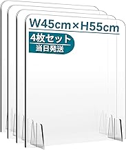 アクリル板【4枚入】透明 アクリル板 W450mm*H550mm 仕切り板 飛沫防止 アクリルパーテーションW45*H55cm 角丸加工 卓上パーテーション 間仕切り公共施設 組立簡単 スタンド 飲食店オフィス 学校 食堂 社食 飛沫防止対策