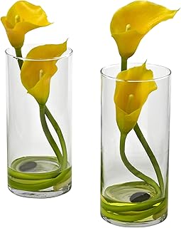 Nearly Natural 1118-YL Calla Lilly 液体イリュージョンシルクフラワーアレンジメント、イエロー