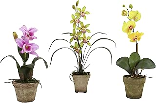 Nearly Natural 4985-A2-S3 鉢植えオーキッドミックス ラベンダー/ゴールド/イエロー 3個セット