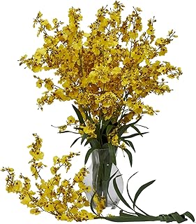 Nearly Natural 1119-YL ダンシングレディー オーキッド液体イリュージョンシルクフラワーアレンジメント、イエロー、30インチ x 9インチ x 7.5インチ