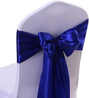 (50, Royal Blue) - iEventStar Satin Sash Chair Bow Cover Wedding Banquet Party Decoration (50, Royal Blue)