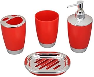 JynXos バスカウンタートップアクセサリーセット ソープディスペンサーポンプ 歯ブラシホルダー タンブラー くずかご 4個 M レッド ZHSJ32