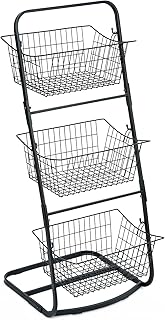 VUSKLY フルーツバスケット キッチン用 3段ワイヤーバスケット 整理用 野菜 ポテト 玉ねぎ スナック用 3段ワイヤーバスケット 野菜 メタルストレージホルダー 15インチ x 16インチ x 35.4インチ ブラック