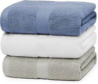 バスタオル 3枚セット 綿100% ふわふわ 大判 3色 バスタオル 柔らか肌触り 吸水速乾 抗菌防臭 重さ約390g/枚 140cm×70cmセット ホワイト カーキ グレー