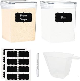 Houseables 気密食品容器 砂糖保存容器 175オンス 2個セット 小麦粉容器 クリアプラスチック BPAフリー ロック蓋付き チョークマーカー/ラベル スクープ/シリアルキーパー ディスペンサー キッチン パントリーボックス