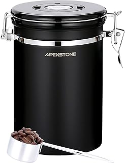 Apexstone コーヒーキャニスター ブラック L 密閉コーヒーキャニスター スクープ付き (22オンス) コーヒーキャニスター ステンレススチール ストレージコンテナ 日付トラッカー付き