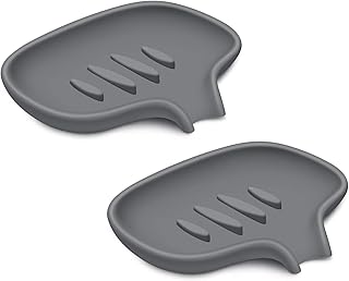 SUBEKYU シリコンソープディッシュ バスルーム用 バーソープホルダー 排水トレイ付き ウォーターフォールソープトレイ キッチンシンク用 2個セット ダークグレー