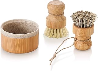 Lyrepie 竹製ディッシュスクラブブラシ ボウル付き キッチンパームディッシュクリーニングブラシ 皿 鍋 フライパン まな板 キッチンシンクのクリーニングなどに