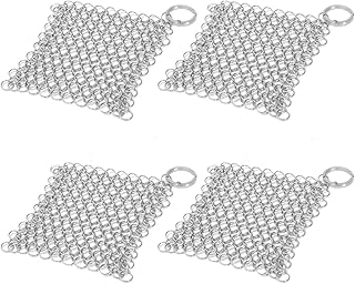 NUOMI チェーンメール スクラバー スクレーパー 鋳鉄クリーナー スチール製 ハンギングリング付き アンチスクラッチ スキレット オーブン フライパン ポット 鍋 BBQグリルなどに 4個 10cm 全国