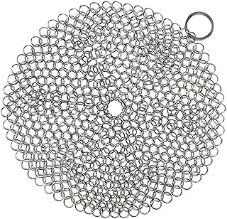 Hulless チェーンメイル スクラバー ステンレススチール 鋳鉄クリーナー 耐久性 錆防止スクラバー 鍋 フライパン BBQグリルなどに 吊り下げリング付き 7 x 7 inch for Round as1907211619